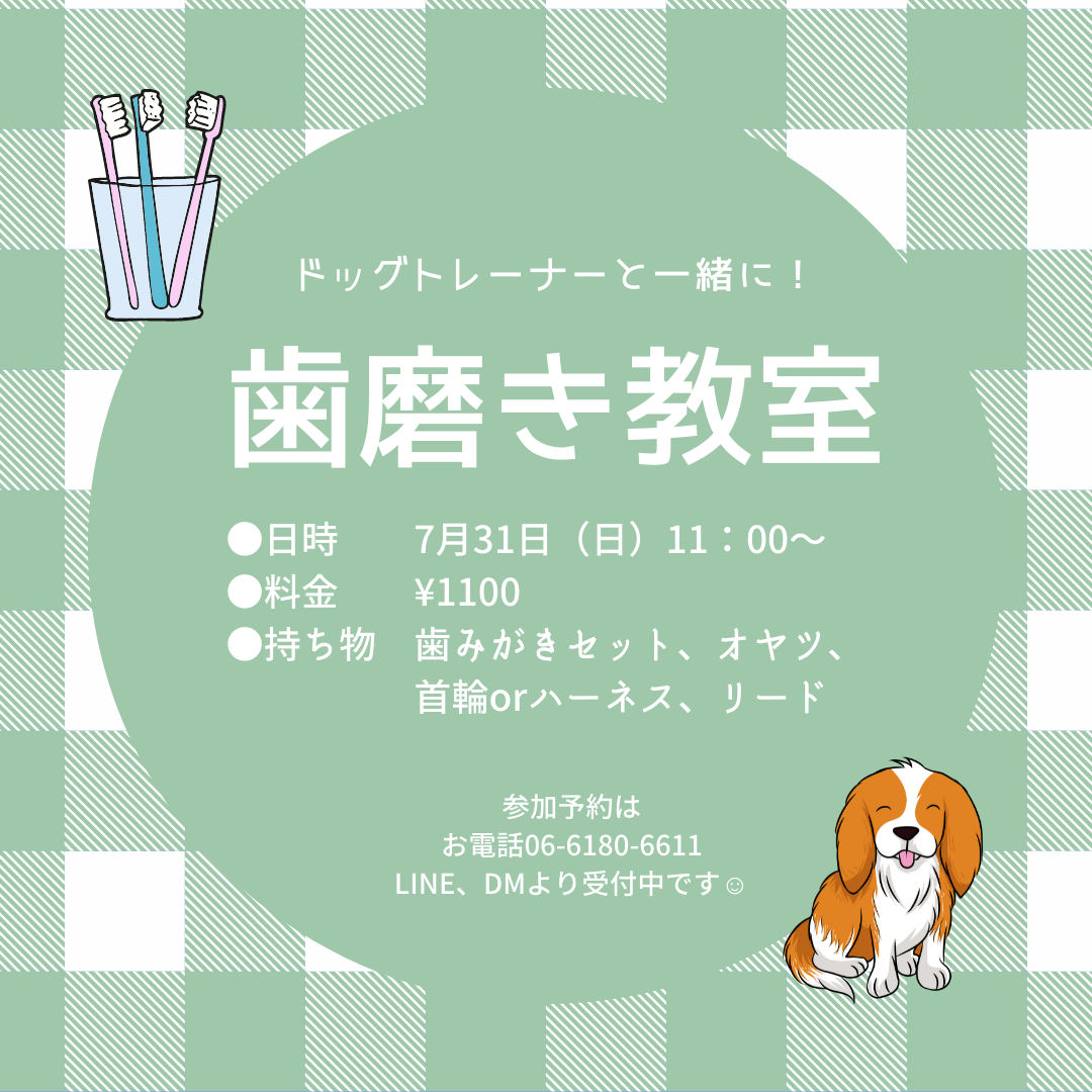 ・持ち物 歯みがきセット、オヤツ、首輪もしくはハーネス、リード