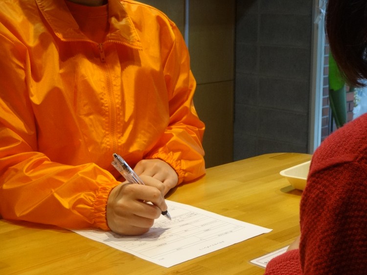 一年以内に接種した狂犬病予防接種、5種以上の混合ワクチン予防接種の各証明書の提示と申込承諾書にご記入頂きます。